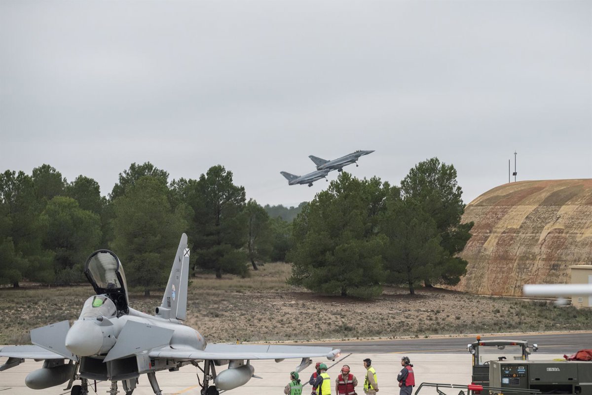 Seis cazas Eurofighter C.16 del Ala 14 han despegado este jueves desde la base aérea de Los Llanos de Albacete rumbo a Constanza, Rumanía, donde participarán en una misión de defensa del espacio aéreo europeo a las puertas de Ucrania y el Mar Negro.