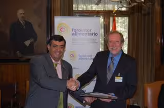 El presidente de la Agencia Española de Seguridad Alimentaria y Nutrición (AESAN), Roberto Sabrido, y el del Foro Interalimentario, Ramón Calbet, han firmado este lunes un convenio de colaboración por el que se comprometen a informar y formar a los consumidores, las instituciones, los profesionales del sector y la sociedad, en general, en materia de seguridad alimentaria, nutrición y cuestiones relacionadas con el medio ambiente y el bienestar animal.