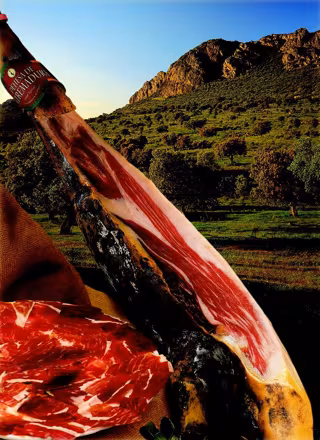 La media de terreno que necesita cada cerdo del Consejo Regulador para alimentarse a base de bellota y hierbas es de 8 hectáreas. "Esta particularidad única, junto a una elaboración artesanal con poca sal, obliga a que los jamones tengan un periodo de curación de más de 3 años", explica.