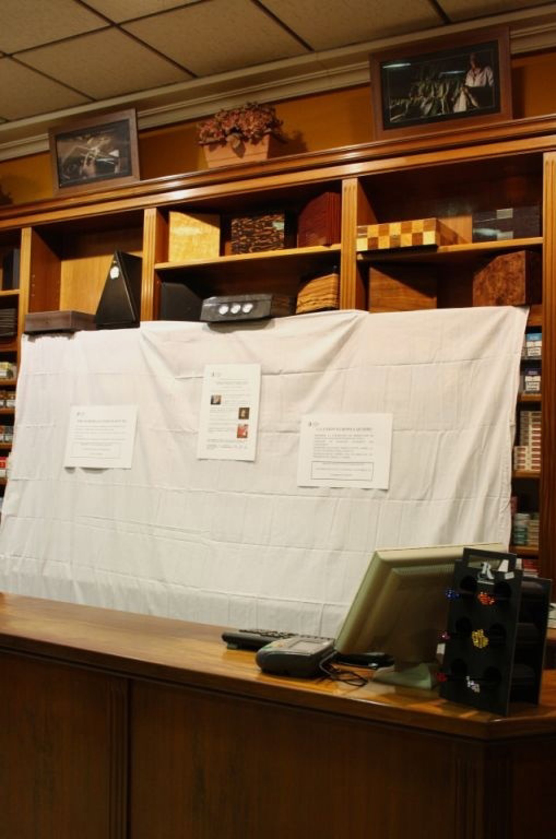 La protesta, convocada por la Confederación Europea de Detallistas de Tabaco (CEDT), ha consistido en ocultar con sábanas blancas las cajetillas de cigarrillos y productos del tabaco en sus establecimientos.