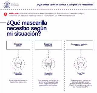 El departamento que dirige Alberto Garzón pretende que la ciudadanía haga una compra "responsable y consciente" de este producto, que se informe de qué tipos de mascarillas hay en el mercado y cuál es más útil para su situación personal en función de su contacto con el coronavirus.