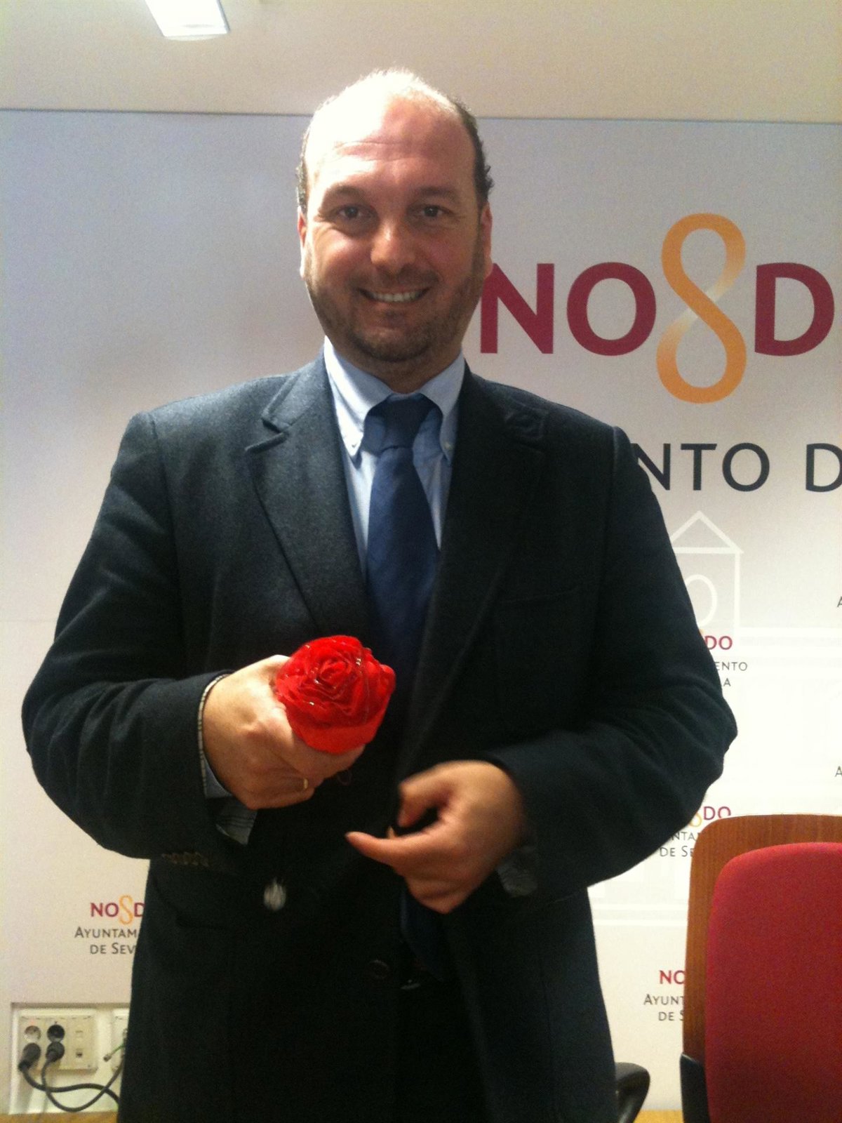 El portavoz adjunto del PP en el Ayuntamiento de Sevilla Francisco Pérez ve una "descarada" promoción del PSOE en el reparto por parte de la Delegación municipal del Salud y Consumo de bolsas de reciclaje con forma de rosa de color rojo.