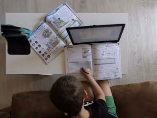 Archivo - Un alumno de Primaria haciendo los deberes de la asignatura de Inglés con varios libros y un ordenador - Eduardo Parra - Europa Press - Archivo