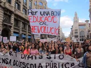 De hecho, las reivindicaciones han sido tanto educativas --contra los recortes y la reforma que planea el Gobierno-- como políticas y económicas, ya que además de rechazar el aumento de las ratios en las aulas y la prolongación en la cobertura de sustituciones, han reprochado al sistema su perspectiva de futuro con gritos como 'Después de estudiar, queremos trabajar', 'Artur Mas, ¿a qué mutua vas?' y 'Que la crisis la paguen los ricos'.