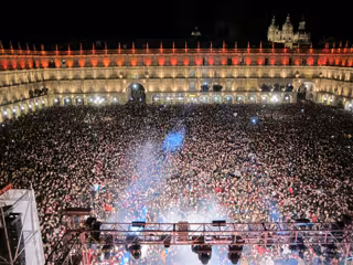 Más de 35.000 jóvenes han celebrado anticipadamente el fin de año con motivo de la tradicional Nochevieja Universitaria en la Plaza Mayor de Salamanca, que luego ha continuado por los locales de ocio nocturno de la ciudad.