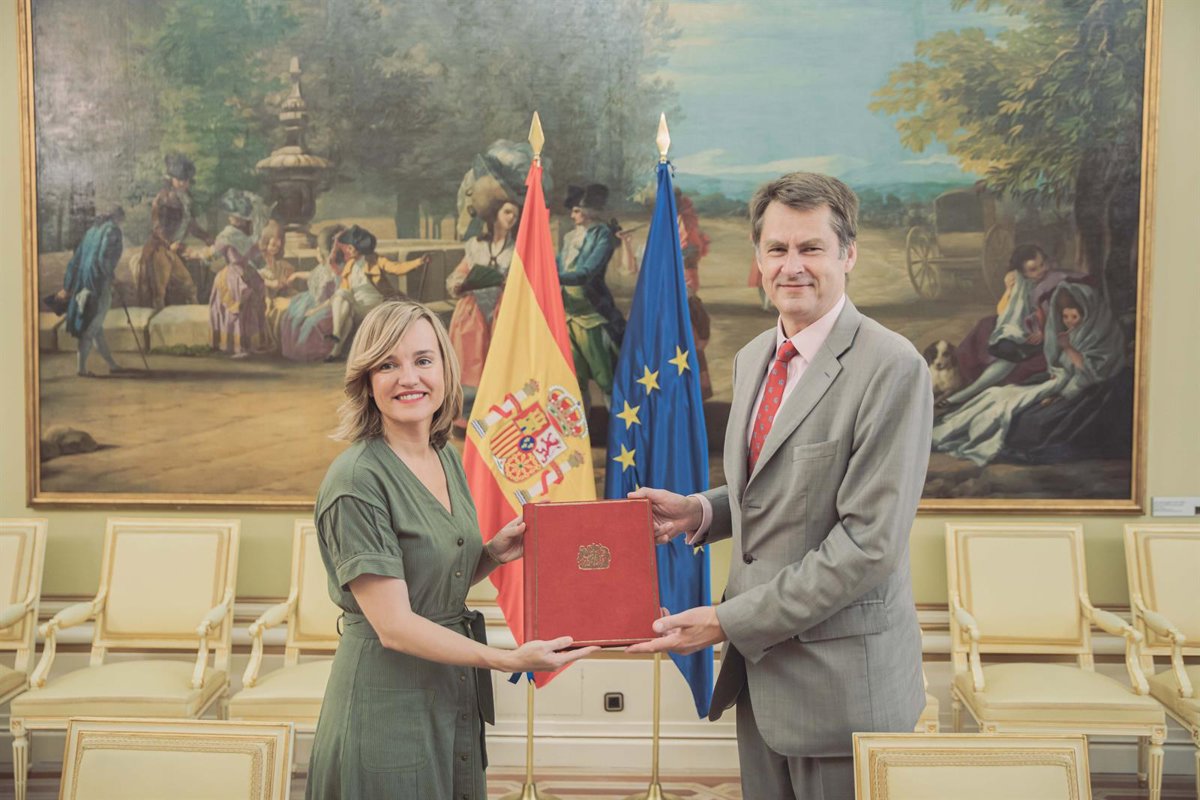 La ministra de Educación y Formación Profesional, Pilar Alegría, ha firmado este miércoles un acuerdo con el embajador del Reino Unido, Hugh Elliott - MINISTERIO DE EDUCACIÓN
