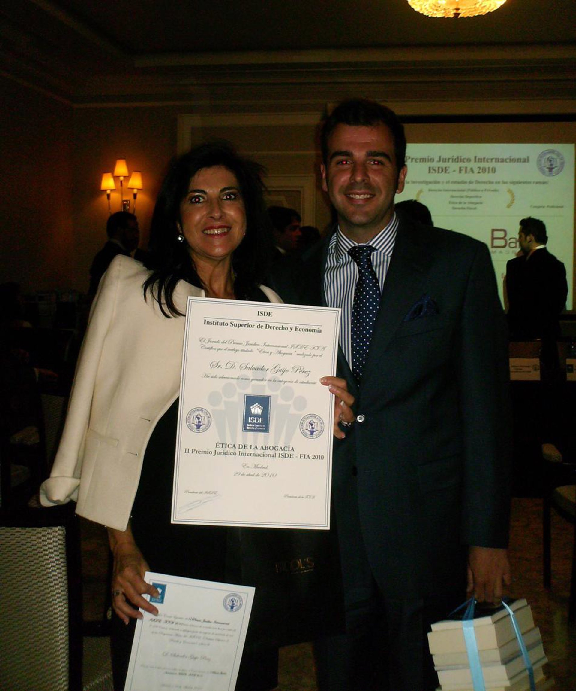 Los premiados en esta segunda edición de estos galardones fueron condecorados con un diploma acreditativo del Premio Jurídico Internacional ISDE-FIA 2010, una beca emérita para estudiar uno de los programas máster del ISDE, y una colección de libros compuesta por once volúmenes de la editorial 'Difusión Jurídica y Temas de Actualidad', así como un reloj. El encargado de entregar los premios fue el magistrado Juez Decano de Madrid, José Luis González Armengol.