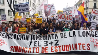La cabecera de la marcha, que recorrerá el centro de la capital desde Atocha hasta la Puerta del Sol porta una pancarta con el lema 'Derogación inmediata de la LOMCE y del 3+2', que, según indican sus convocantes es común al de la mayoría de las protestas que se van a celebrar medio centenar de ciudades españolas.