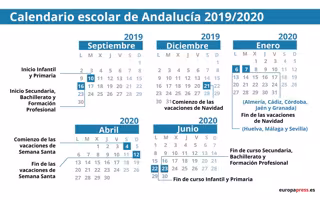 Las vacaciones de Navidad comenzarán en toda Andalucía el 21 de diciembre pero terminarán en fechas distintas según la provincia: el 6 de enero en Huelva, Málaga y Sevilla; y el 7 de enero en Almería, Cádiz, Córdoba, Jaén y Granada. Las vacaciones de Semana Santa serán igual en toda la región, del 4 al 12 de abril.
