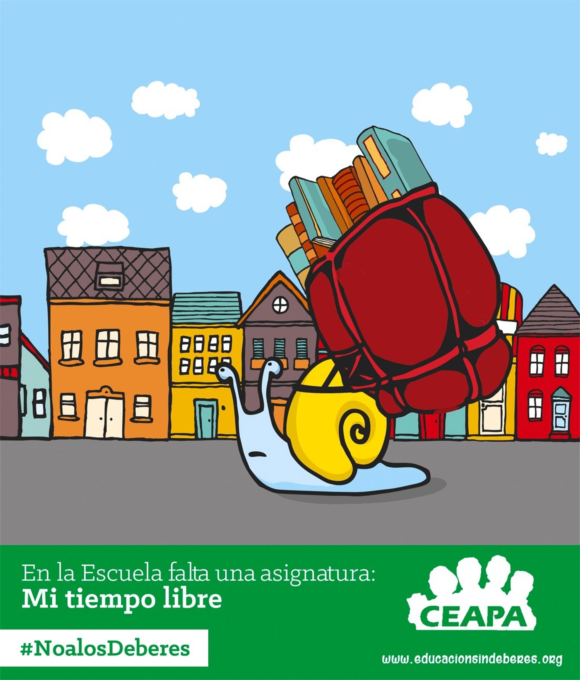 La Confederación Española de Asociaciones de Padres y Madres del Alumnado (CEAPA) ha puesto en marcha una campaña de sensibilización y movilización en contra de los deberes escolares, que pretende lograr, como primer paso a la eliminación total, "un noviembre sin deberes los fines de semana".