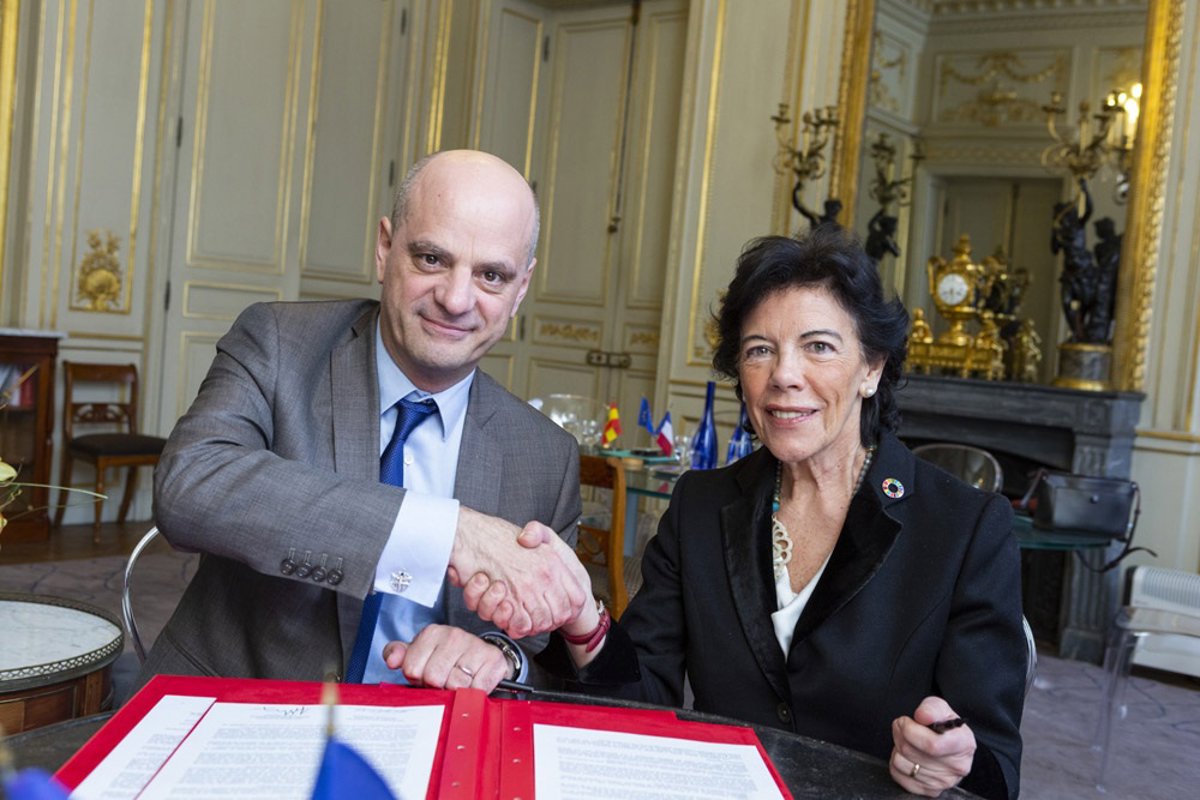 El ministro de Educación Nacional y de la Juventud de Francia, Jean-Michel Blanquer, y Celaá han firmado una declaración en la que expresan su intención de colaborar en la construcción del Espacio Europeo de Educación, que empezará a implantarse en 2025.