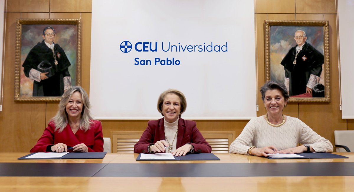 El convenio ha sido rubricado por la presidenta de la CCBE, Trinidad Jiménez; la rectora de la Universidad CEU San Pablo, Rosa Mª Visiedo Claverol; y la gerente de la Universidad CEU San Pablo, Carmen García de Elías, quienes han destacado la relevancia estratégica del acuerdo en un contexto global cada vez más interconectado.
