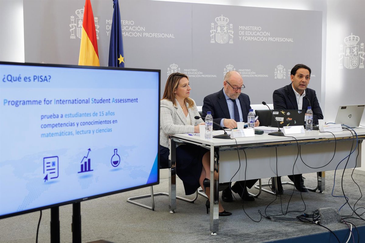 La directora general de Evaluación y Cooperación Territorial, Mónica Domínguez; el secretario de Estado de Educación, José Manuel Bar y el analista Senior de PISA, Daniel Salinas, - Alejandro Martínez Vélez - Europa Press