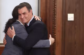 El presidente del Gobierno en funciones, Pedro Sánchez abraza al secretario general de Podemos, Pablo Iglesias, el pasado mes de diciembre. - Eduardo Parra - Europa Press