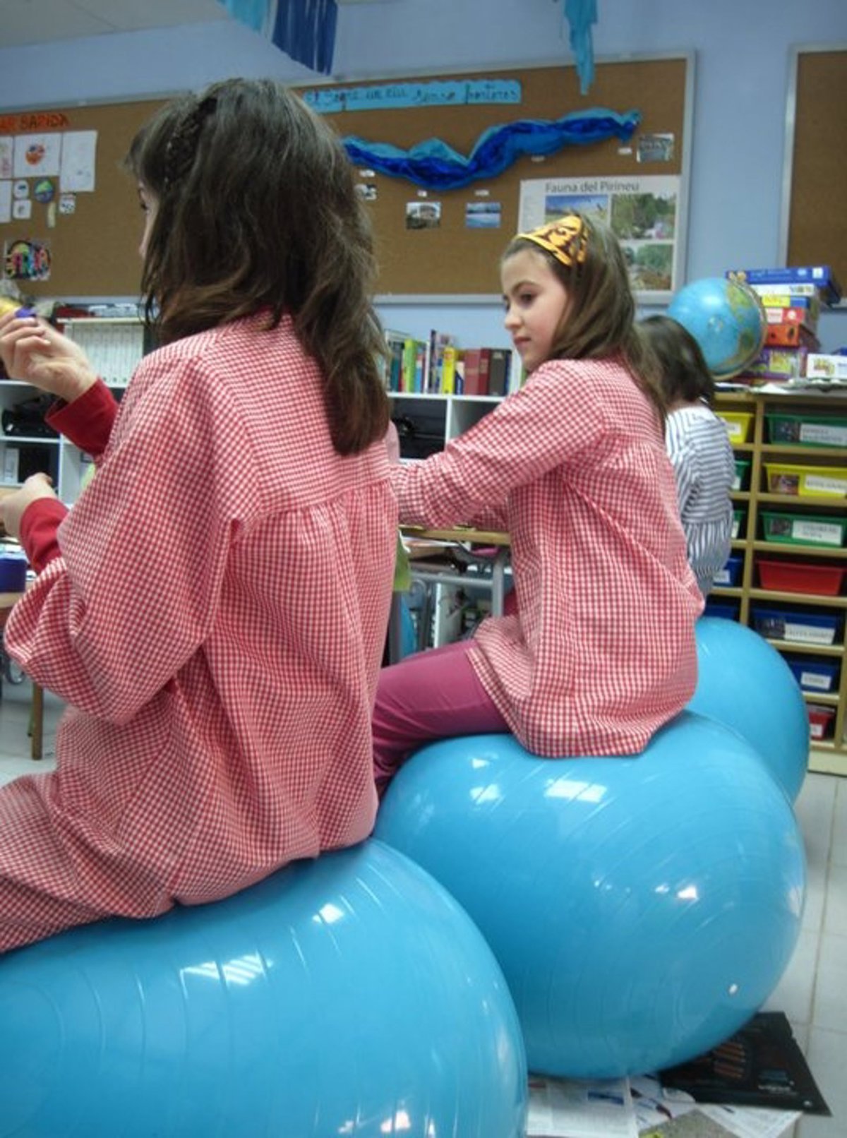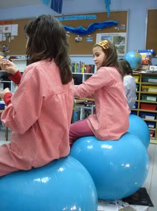 Alumnos de la escuela Ridolaina de Montellá (Lleida) han dejado de sentarse en sillas para hacerlo en balones terapéuticos que les obligan a mantener los pies en el suelo y la espalda recta, ha confirmado a Europa Press la directora del centro Elisenda Clos.