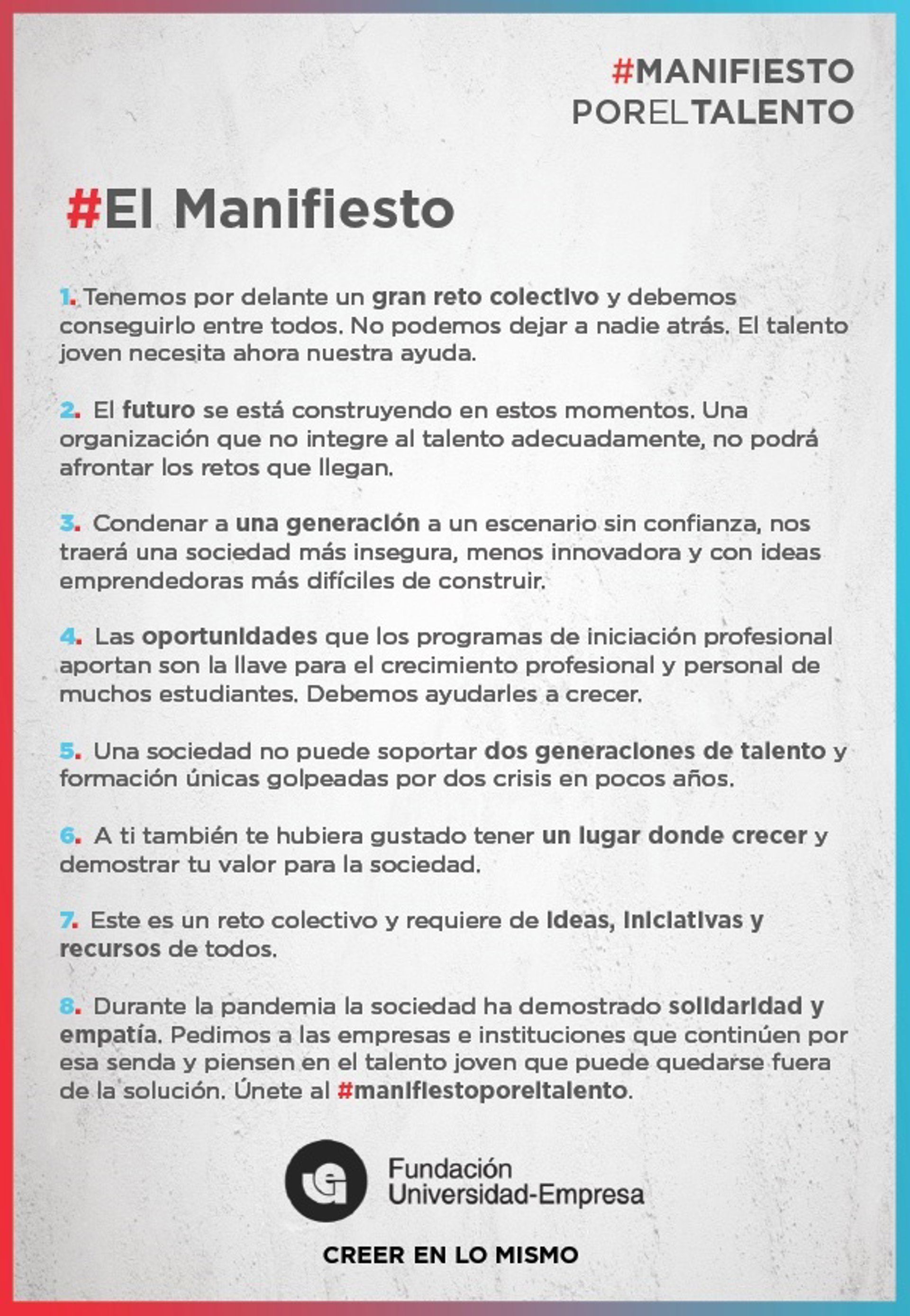 #Manifiestoporeltalento Promovido Por Fundación Universidad-Empresa - FUE - Archivo