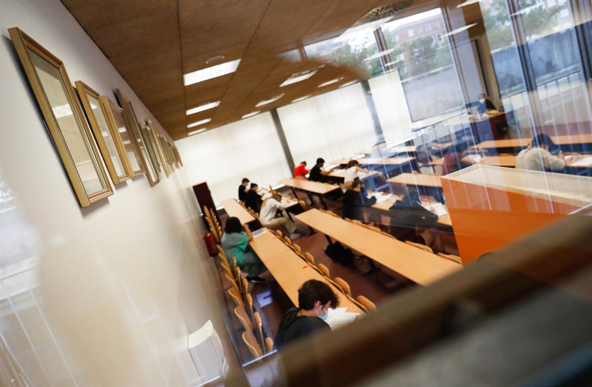 Archivo - Un grupo de estudiantes durante la convocatoria extraordinaria de la Evaluación del Bachillerato para el Acceso a la Universidad (EBAU) en Madrid - Cézaro De Luca - Europa Press - Archivo