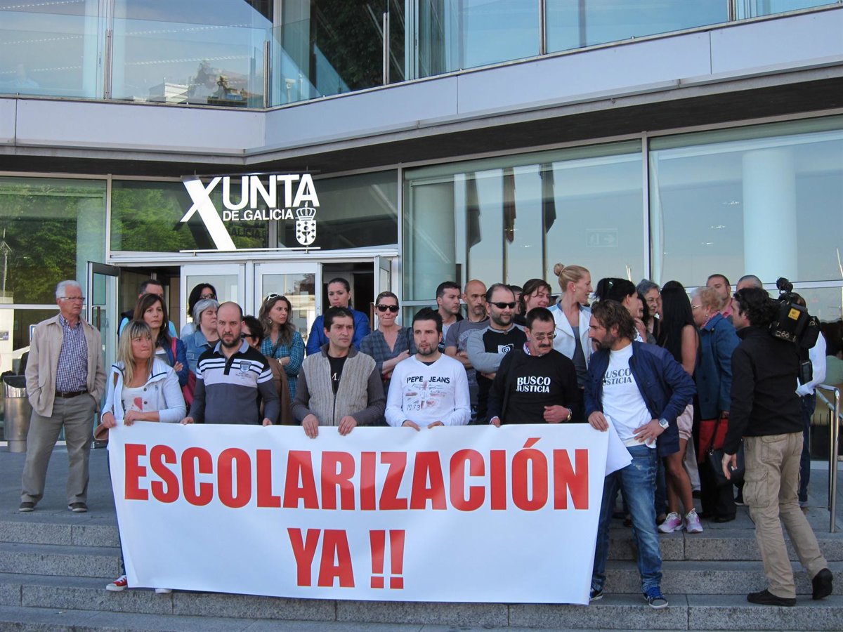 Los padres del niño se concentraron, junto a varias decenas de personas, ante el edificio de la Xunta en Vigo con una pancarta en la que solicitan que al niño lo trasladen a un nuevo colegio tras lo ocurrido en Santa Cristina, centro ubicado en la parroquia de Lavadores. "Estamos esperando que alguien lo atienda, es una desvergüenza que nadie tenga la decencia de bajar aquí y hablar conmigo", afirmó el padre durante el acto.