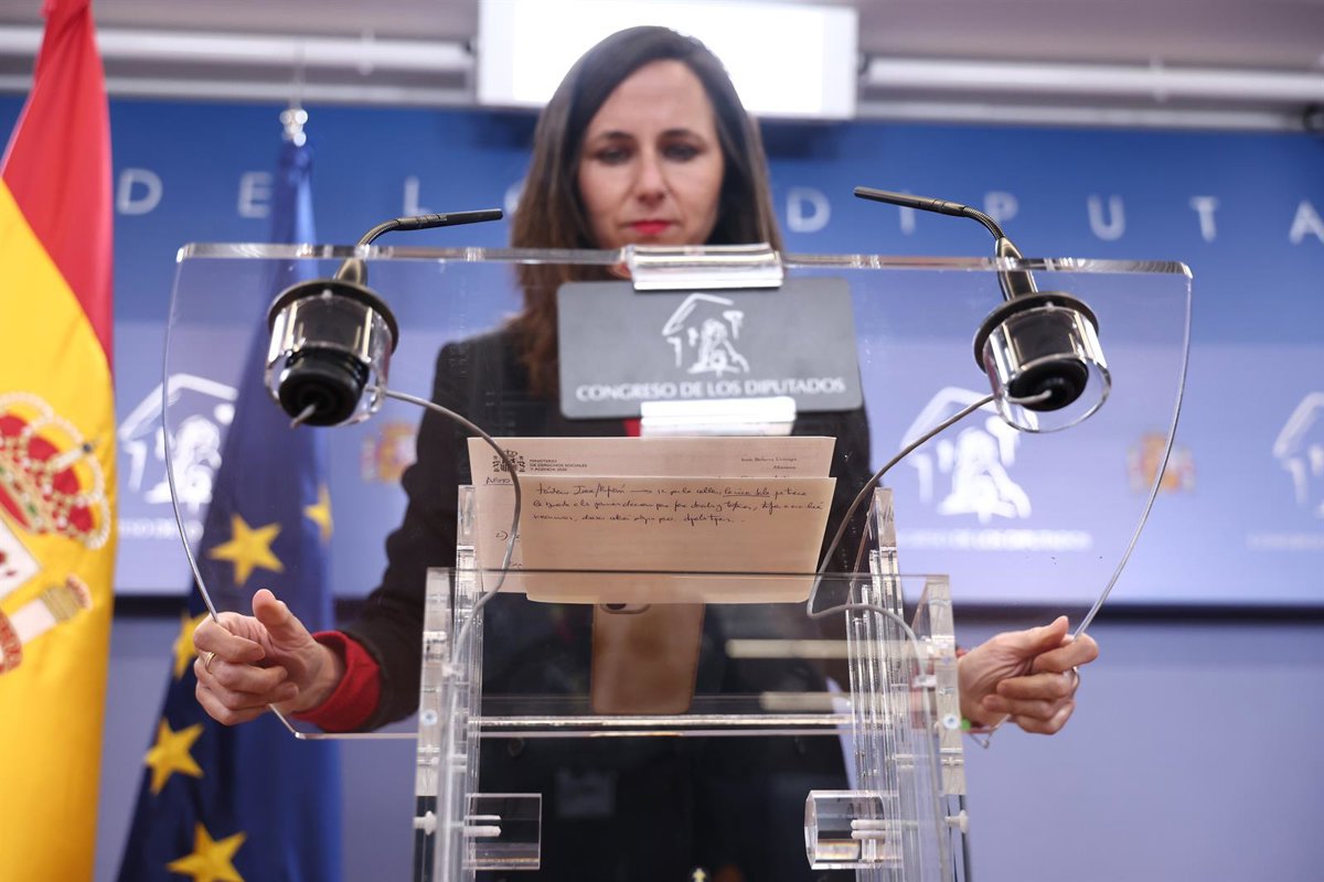La secretaria general de Podemos, Ione Belarra, durante una rueda de prensa en el Congreso, a 14 de abril de 2026, en Madrid (España). - Eduardo Parra - Europa Press