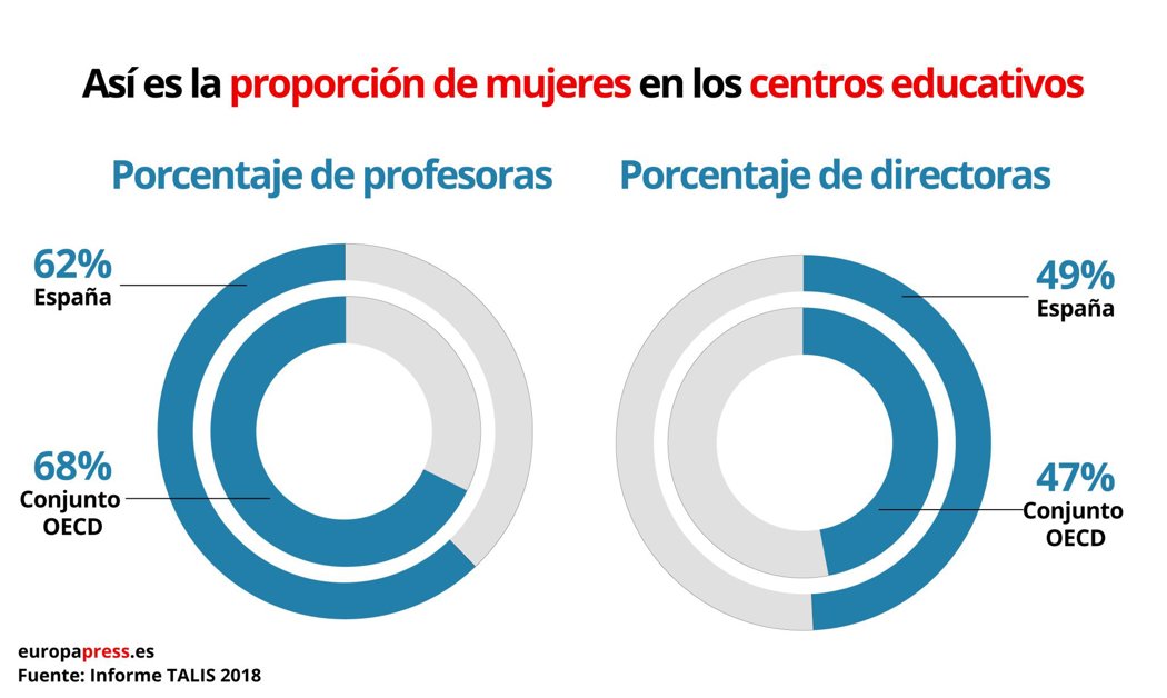 El secretario de Estado de Educación también ha subrayado la presencia de la mujer en la "feminizada" profesión de la enseñanza, resaltando que el porcentaje de profesoras en España se reduce en la educación secundaria (un 62%, por debajo de la media de la OCDE situada en el 68%), aunque el número de directoras de centros educativos en esta etapa educativa alcanza el 49% superando el 47% en el conjunto de países de la OCDE.