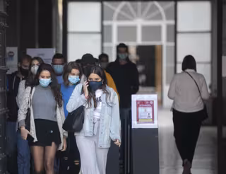 Varios estudiantes en una de las entradas del edificio del Rectorado de la Universidad de Sevilla, durante el inicio del curso universitario 2020-2021 - María José López - Europa Press - Archivo