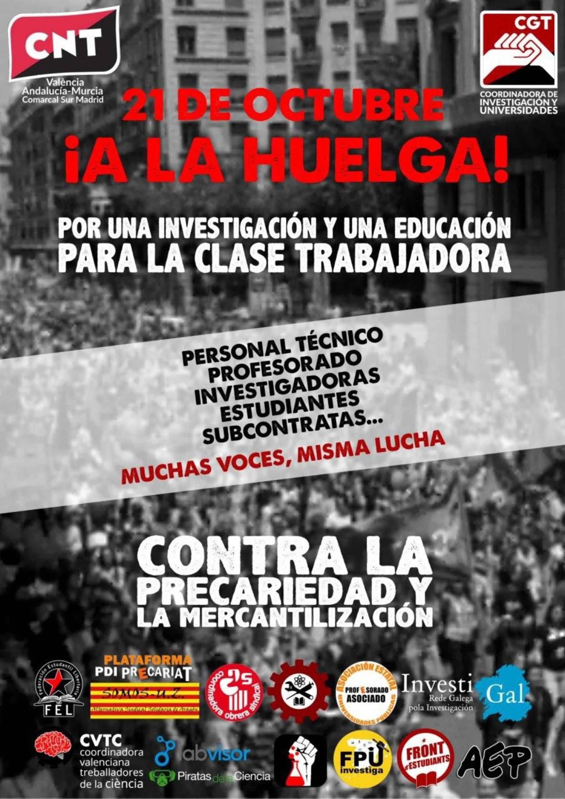 Cartel de convocatoria de huelga de las universidades y centros de investigación para este miércoles 21 de octubre - CGT/CNT - Archivo