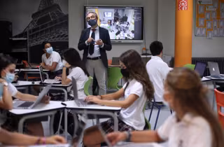 El profesor de Matemáticas de 4 de la ESO, Alejandro Díaz, durante una clase impartida en el colegio SEK Ciudalcampo, en San Sebastián de los Reyes, Madrid (España), a 18 de septiembre de 2020. El Colegio internacional y privado SEK Ciudalcampo es uno - Eduardo Parra - Europa Press