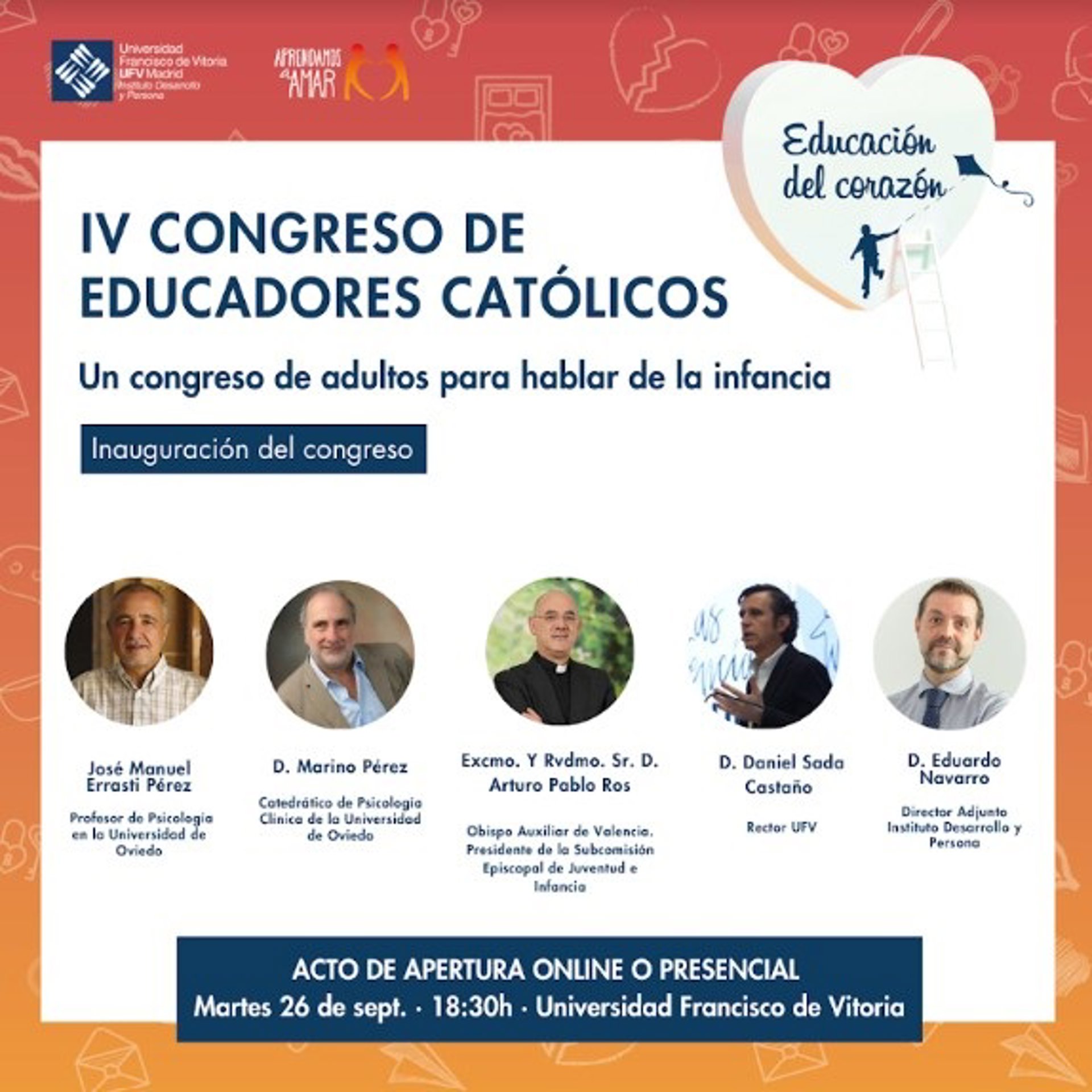 La Universidad Francisco de Vitoria (UFV), a través de su Instituto Desarrollo y Persona, ha lanzado la IV edición del Congreso de Educadores Católicos, gratuito y online, bajo el título 'La educación del corazón: un congreso de adultos para hablar de la infancia', según ha informado la Universidad.