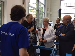 Acompañado de su homóloga alemana, Annette Schavan, el Presidente del Instituto Federal de FP, la Directora de la Academia de Formación Continua para profesores de Esslingen y el Director Gerente de la Cámara de Comercio Alemana en Madrid, el ministro ha recorrido las instalaciones y se ha interesado por los estudiantes que allí trabajan dentro del sistema de FP dual que se imparte en ese país.