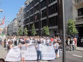La portavoz del grupo, Silvia Barquero, ha explicado durante la protesta que los autobuses proceden de ciudades de toda España como Madrid, Barcelona, Bilbao, Alicante, Valencia, Pamplona y Zaragoza para trasladar a unos manifestantes que pretendían "romper una lanza" en favor de los animales.