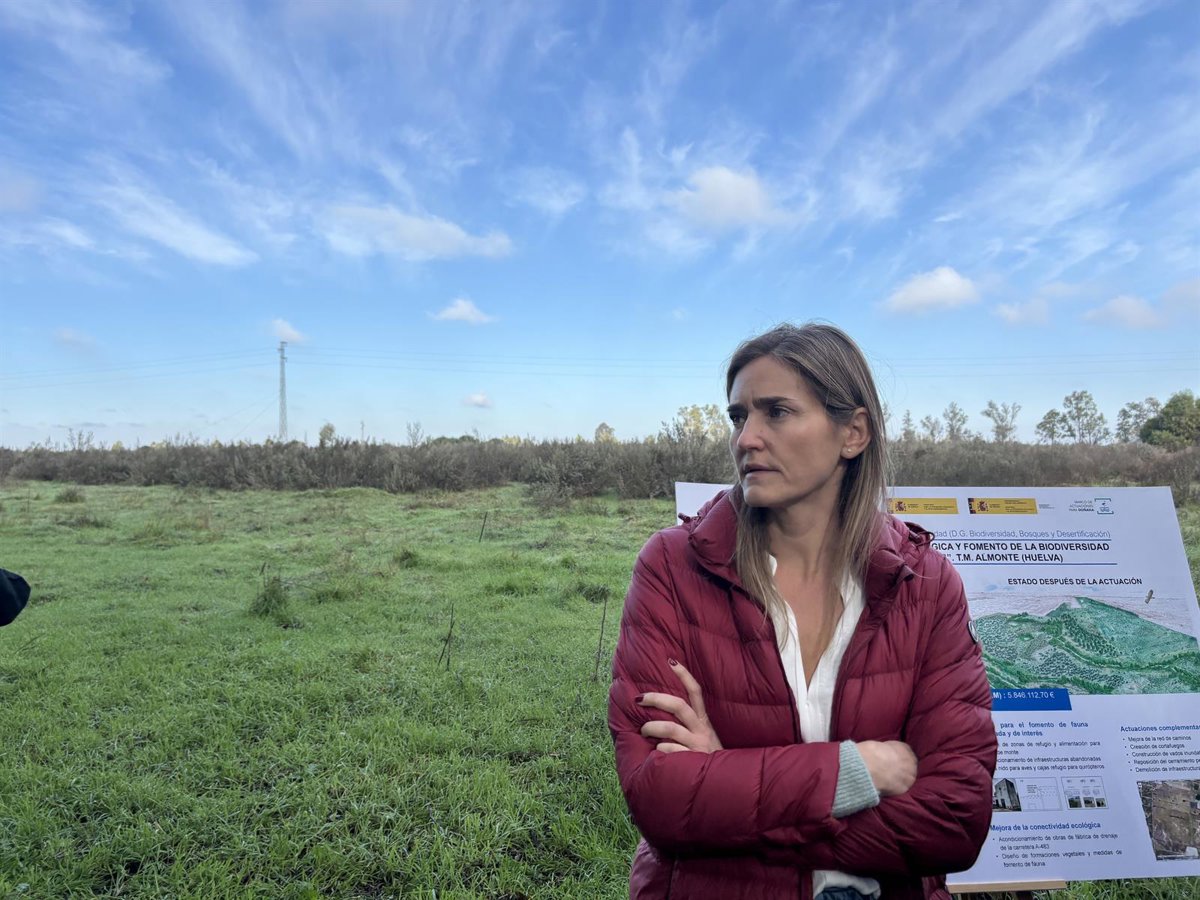 La vicepresidenta Tercera del Gobierno y Ministra para la Transición Ecológica y el Reto Demográfico, Sara Aagesen, en su visita el pasado viernes a la finca Los Mimbrales, en Doñana. - MITECO
