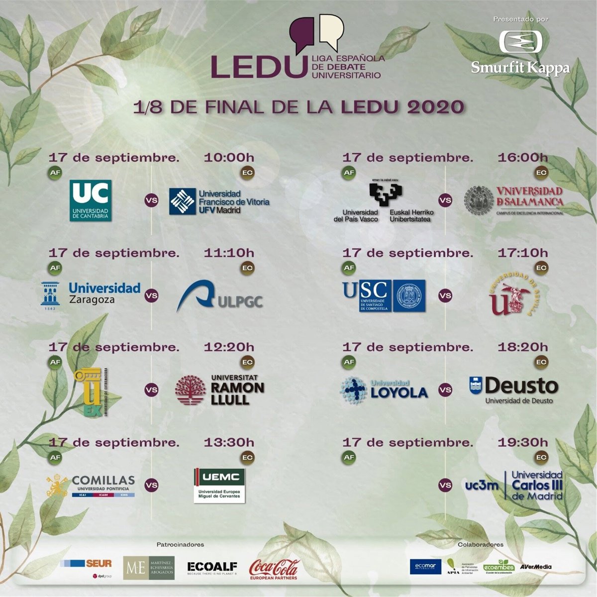 Una quincena de equipos participará desde este jueves en la VIII edición de la Liga Española de Debate Universitario (LEDU) en la que el tema de reflexión será el cambio climático. La liga llegará a la final el domingo, 27 de septiembre, con un jurado que presidirá el expresidente de Ciudadanos y actual presidente ejecutivo de Martínez-Echevarría Abogados, Albert Rivera.