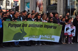 El toro embolado, un mono dentro de una jaula, cachorros en perreras, cerdos a punto de ser sacrificados, un conejo disparado por un cazador o una vaquilla ajusticiada en la plaza sirven al Partido Animalista para ejemplificar la lucha que quiere emprender desde las instituciones para acabar con el maltrato y el sacrificio de animales.
