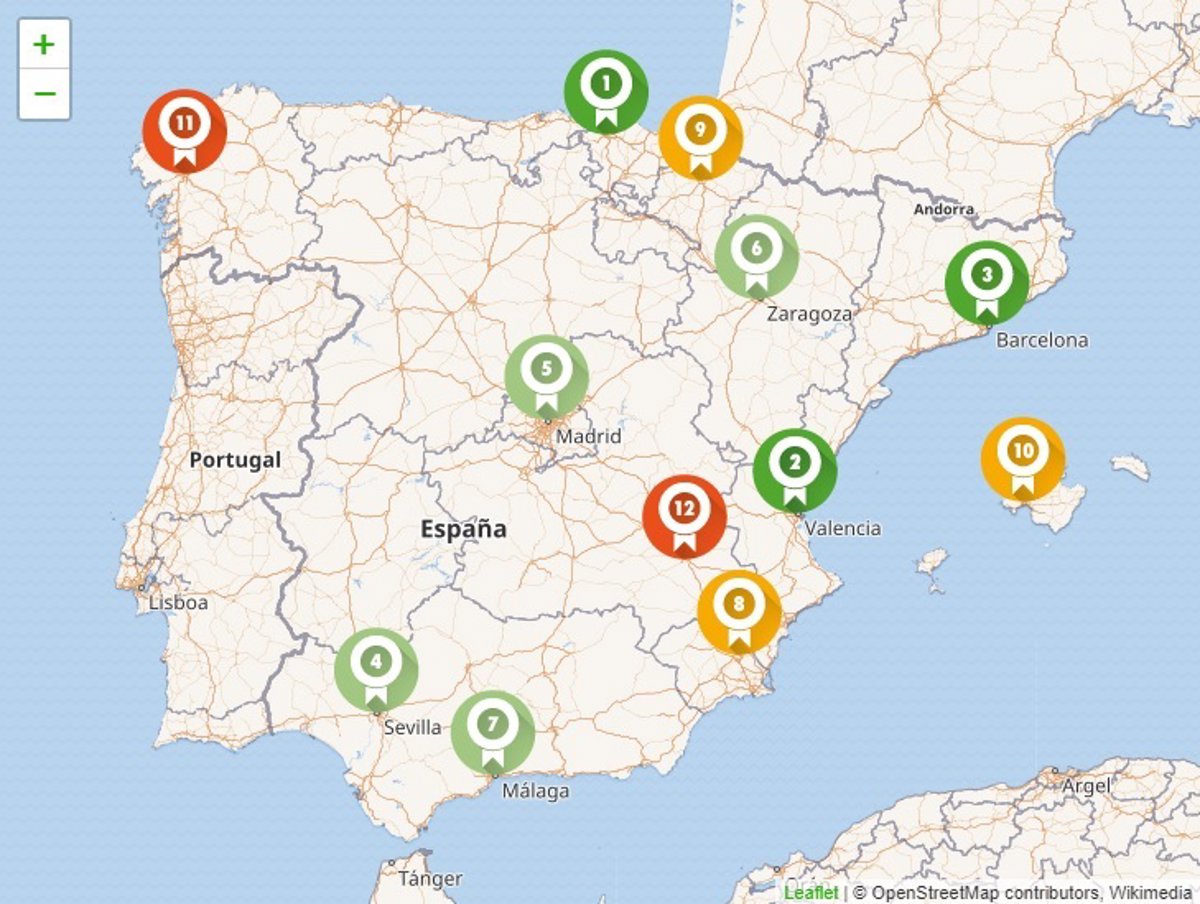 Le siguen en la clasificación Zaragoza (5,5) y Málaga (5,2) donde "se observan avances en la buena dirección aunque requieren medidas más contundentes para mejorar".