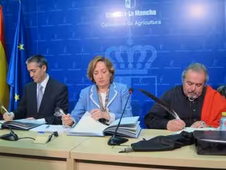 La consejera de Agricultura, María Luisa Soriano, ha firmado un convenio de colaboración con el presidente de la Fundación Aquila, William Voelker, en virtud del cual ambas instituciones se comprometen a aunar esfuerzos en favor de la conservación del águila imperial.