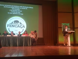 Durante el Encuentro Nacional de Cazadores organizado por la Federación Portuguesa de Caza (Fencaça) en Santarem que se ha celebrado este fin de semana en la localidad lusa, participaron el ministro de Agricultura de Portugal, Luis Capoulas Santos, eurodiputados lusos, representantes de los dos partidos políticos mayoritarios y de las Fuerzas de Seguridad del país vecino, así como el Instituto Nacional de Investigación Agraria y Veterinaria, la Asociación Nacional de Propietarios de Cotos, la Confederación Nacional de Cazadores Portugueses y numerosas sociedades de cazadores, además de Fencaça y la RFEC, representadas por sus respectivos presidentes, Jacinto Amaro y Ángel López Maraver.