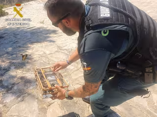 Un agente liberando los jilgueros - GUARDIA CIVIL - Archivo