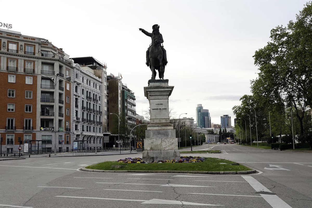 El Paseo de la Castellana vacío, una de las calles más emblemáticas de la capital durante el confinamiento - Josefina Blanco - Europa Press
