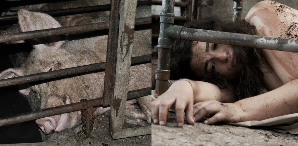 Allí, se pusieron "en el lugar de los miles de millones de animales que son utilizados como comida", encerrándose semidesnudos en las jaulas que forman parte del ciclo de "explotación animal" de la granja.
