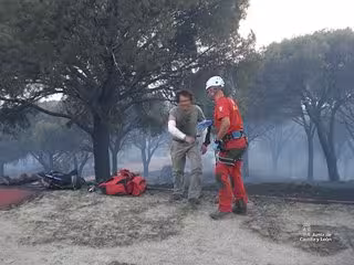 El Grupo de Rescate de Protección Civil de la Junta ha evacuado, en la tarde de este sábado, de la zona del incendio de Cebreros (Ávila) a un varón de 49 años, identificado como J.C.H.P, que había sufrido quemaduras en la cara y los brazos mientras colaboraba en la extinción de las llamas en una finca.