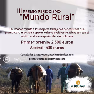 La Fundación Artemisan ha convocado la III edición del Premio de Periodismo 'Mundo Rural', que busca reconocer los mejores trabajos periodísticos que promuevan, impulsen o apoyen los valores relacionados con el mundo rural, así como con las actividades productivas que hacen posible su sostenibilidad, con especial atención a la caza y sus aportaciones al medio rural, según han informado en un comunicado.