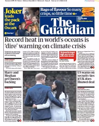 Portada de The Guardian, diario británico premiado por la Fundación BBVA con el Premio Biophilia por el "impacto transformador" de su comunicación medioambiental. - FUNDACIÓN BBVA