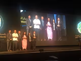 La entrega de 'Premios Ramsar 2018' tuvo lugar el pasado 22 de octubre, dentro de la 13ª Reunión de la conferencia de las Partes de la Convención de Ramsar, que se está llevando a cabo en Dubái (Emiratos Árabes) entre los días 21 al 29 de octubre. El galardón se encuadra en la categoría de 'Uso racional de los humedales' y lo recogió el presidente de FGN, Cosme Morillo Fernández.