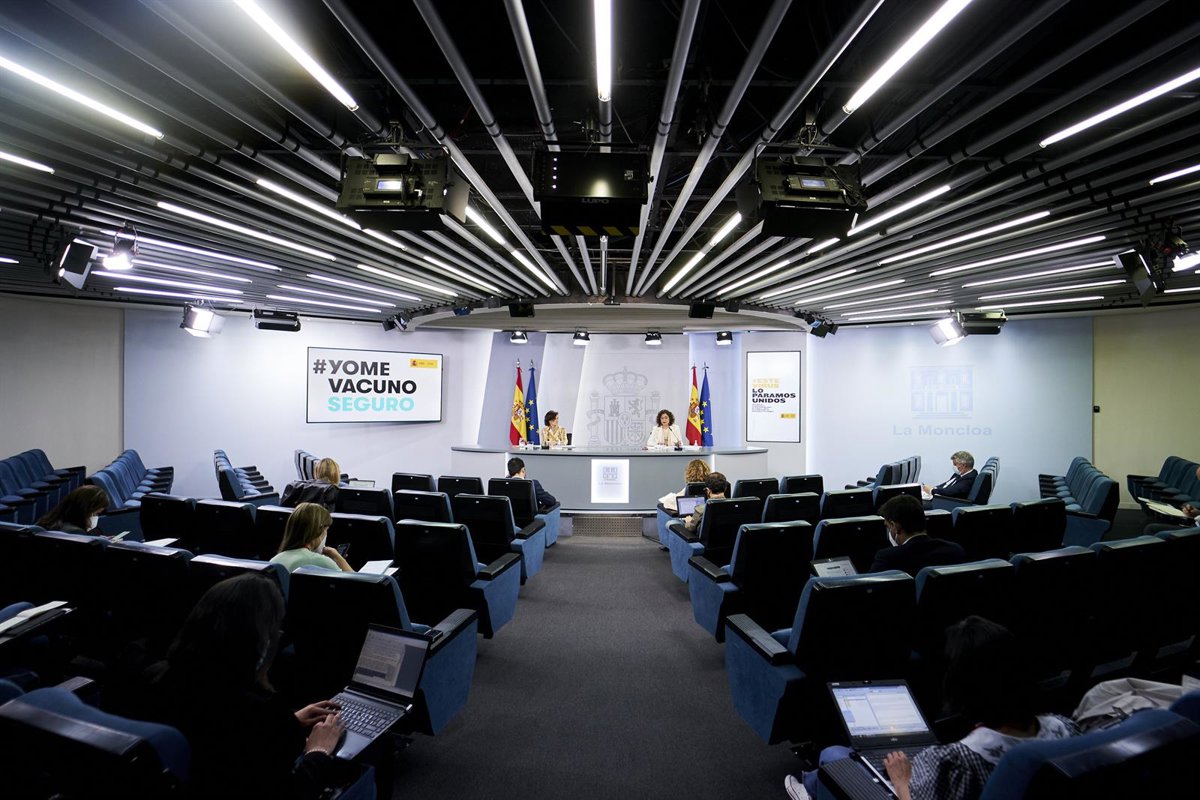La vicepresidenta primera, Carmen Calvo (i), y la ministra portavoz, María Jesús Montero (d) comparecen en rueda de prensa posterior al Consejo de Ministros en Moncloa, a 4 de mayo de 2021, en Madrid (España). - A, Pérez Meca. POOL - Europa Press