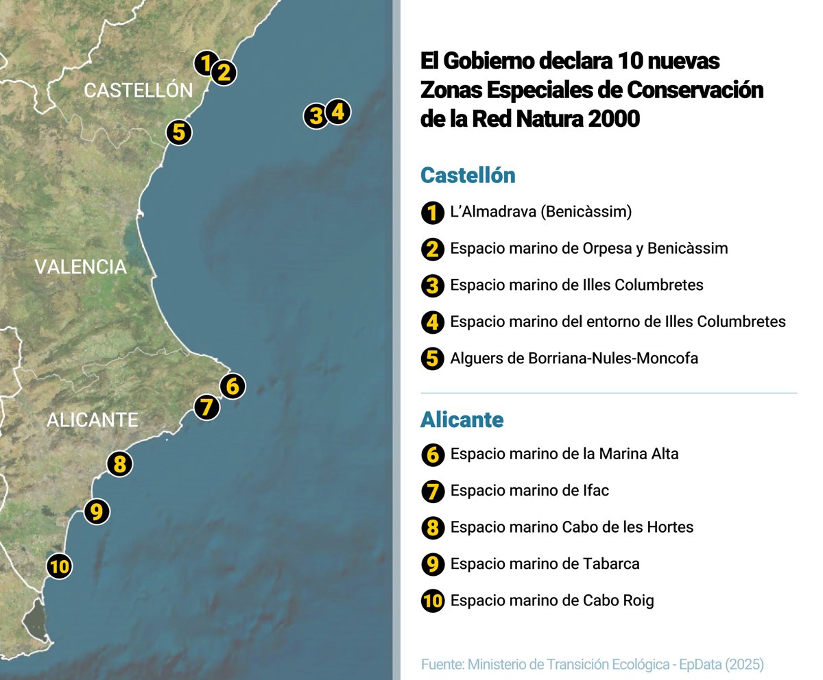 Este real decreto declara diez zonas de especial conservación, de las cuales siete tienen consideración de zonas de especial protección para las aves en la región marina mediterránea. Asimismo, se aprueban los diez planes de gestión para ordenar los usos y sus actividades en estas mismas zonas".