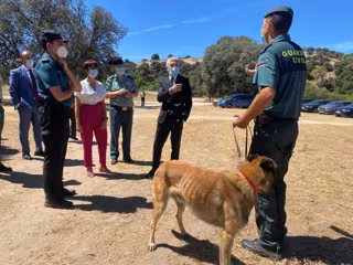Durante la visita, Grande-Marlaska y Gámez se han trasladado al Monte del Pardo para asistir a una demostración de capacidades y medios del SEPRONA, donde se han podido ver actuaciones con cebos envenenados con el apoyo de perros detectores del Servicio Cinológico, una práctica de recogida de muestras de aguas y una inspección ocular de un incendio forestal para determinar cómo los agentes investigadores delimitan el punto de inicio de un incendio.