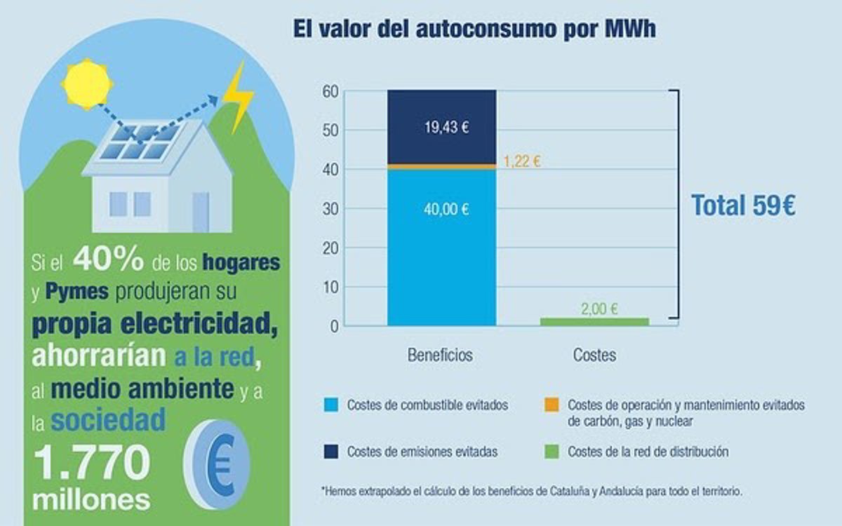 Asimismo, asegura que los beneficios del autoconsumo superan con creces los costes incurridos en la red eléctrica o la moderación de ingresos a través de la factura eléctrica.