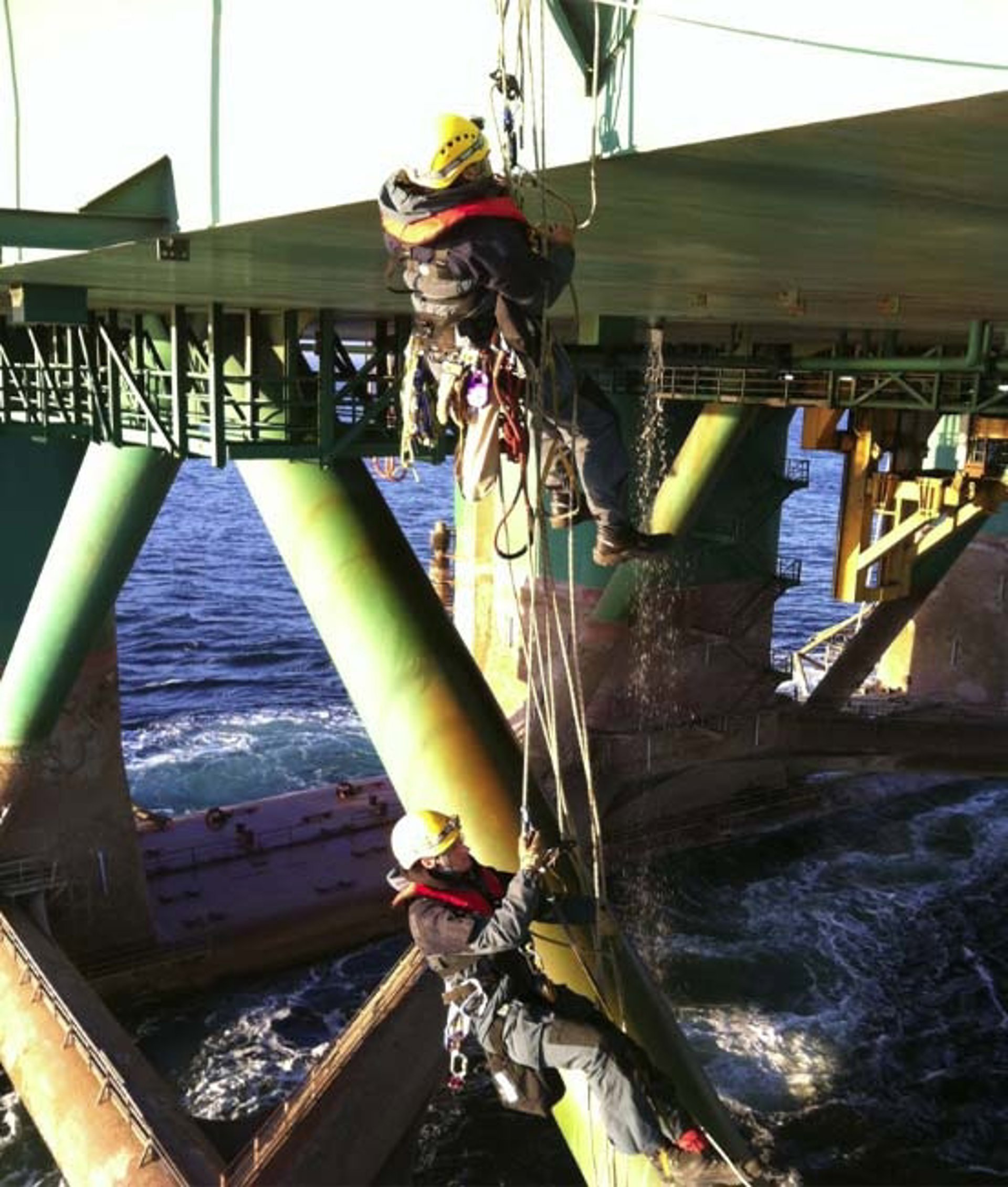 Los escaladores han subido a la cima de la plataforma y han desplegado una pancarta con el lema 'Stop Arctic destruction' (Detened la destrucción del Ártico).