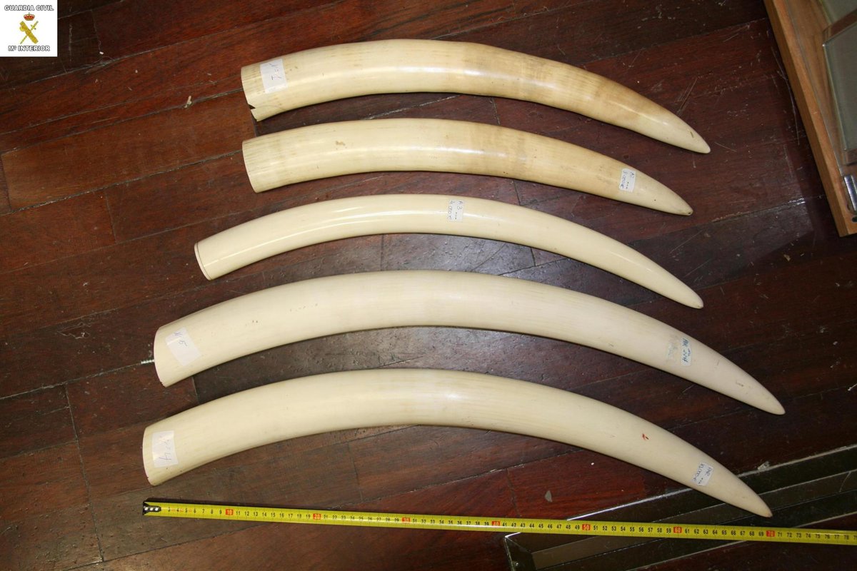 El Equipo del Servicio de Protección de la naturaleza de la Guardia Civil (Seprona) ha aprehendido en un comercio de artesanía, situado en una céntrica calle de Santa Cruz de Tenerife, un total de cinco colmillos de elefante que se hallaban expuestos para su venta.