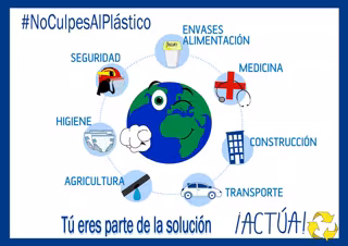 Así, el Instituto Tecnológico del Plástico (AIMPLAS), la Asociación Española de Industriales de Plásticos (ANAIP), la Asociación Nacional de Recicladores de Plástico (ANARPLA), la Asociación Valenciana de Empresarios de Plásticos (AVEP), la entidad que promueve la gestión ecoeficiente de los plásticos CICLOPLAST y la Asociación Europea de Productores de Materias Primas Plásticas (PlasticsEurope) han lanzado la campaña #NoCulpesAlPlástico, que incluye un decálogo con los beneficios del plástico.